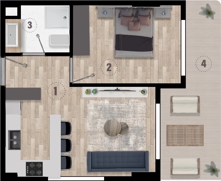 Wohnung zum Verkauf in Aksu. Fläche m²: 49, Zimmer: 1+1, Preis: 153 240 Euro. (ID 45)