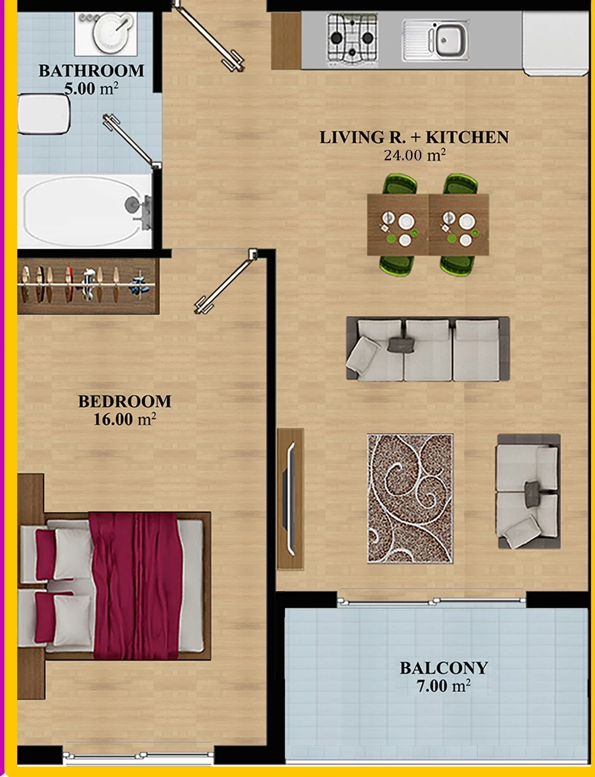 Wohnung zum Verkauf in Alanya. Fläche m²: 63, Zimmer: 1+1, Preis: 99 500 Euro. (ID 573)