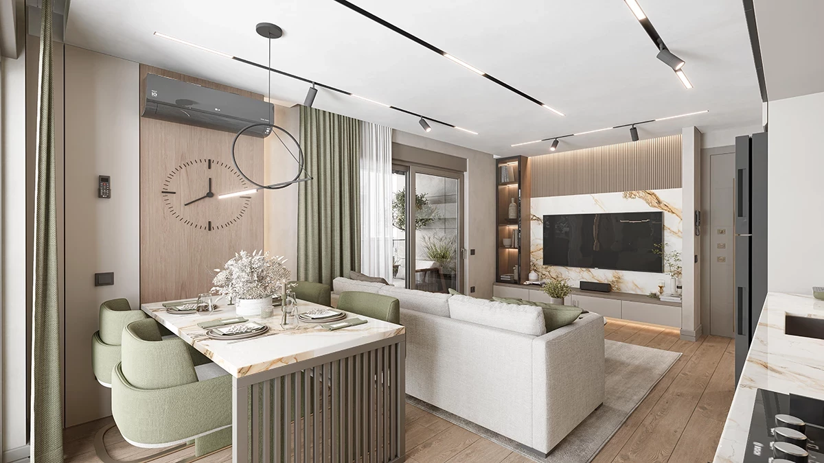 Wohnung zum Verkauf in Aksu. Fläche m²: 58, Zimmer: 1+1, Preis: 140 000 Euro. (ID 410)