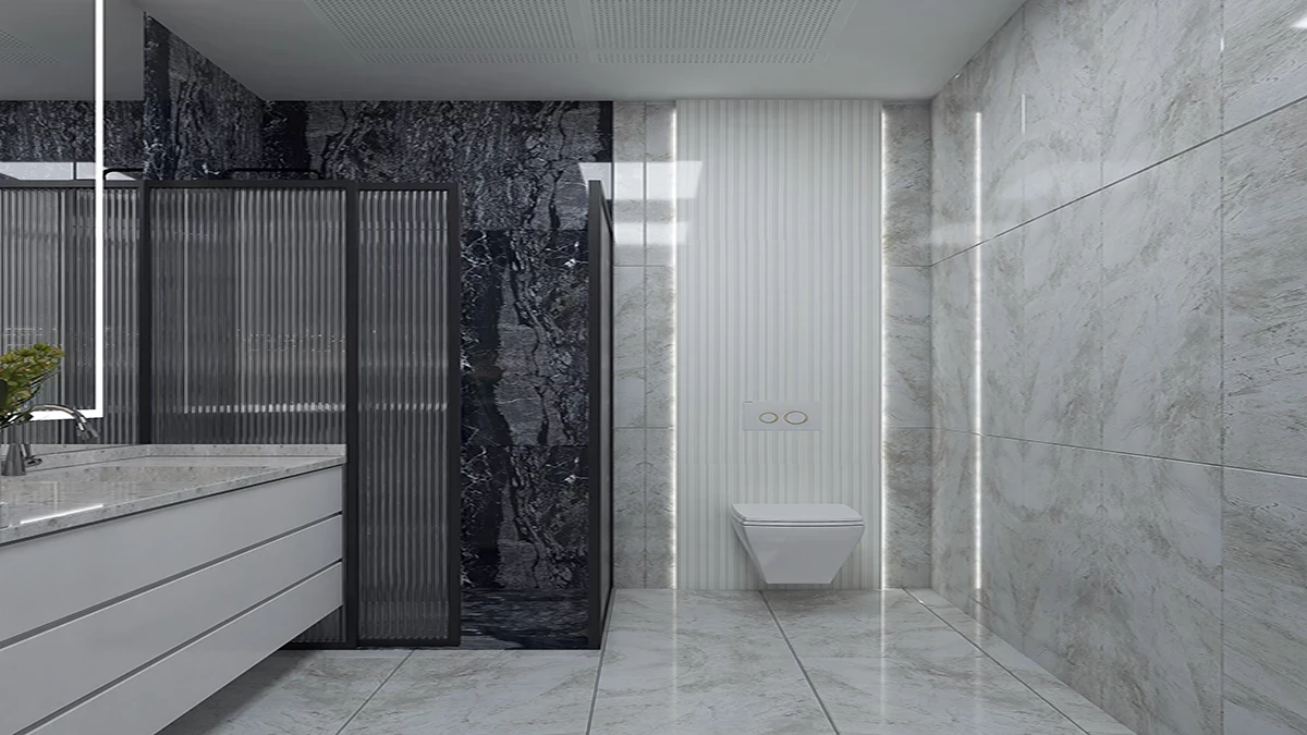 shower cabins made of tempered glass in all bathrooms,