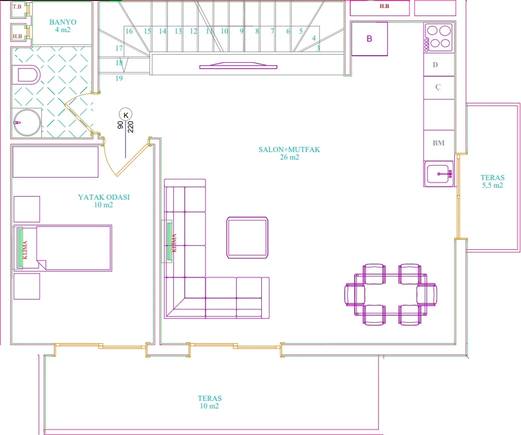 Продается квартира в Газипаша. Площадь,м: 90, комнат...